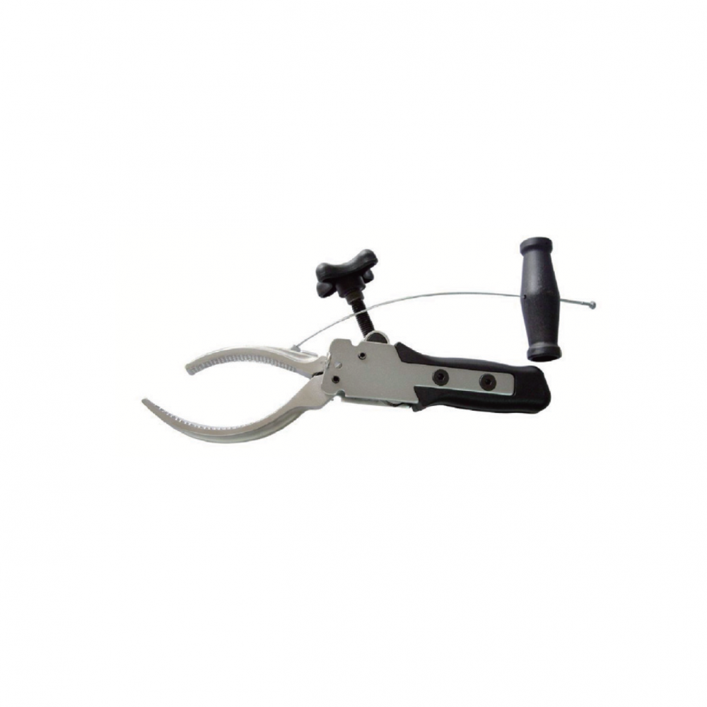 Tool consisting of a body and a moving jaw that adjust to fit hose diameters between 45 and 120mm.