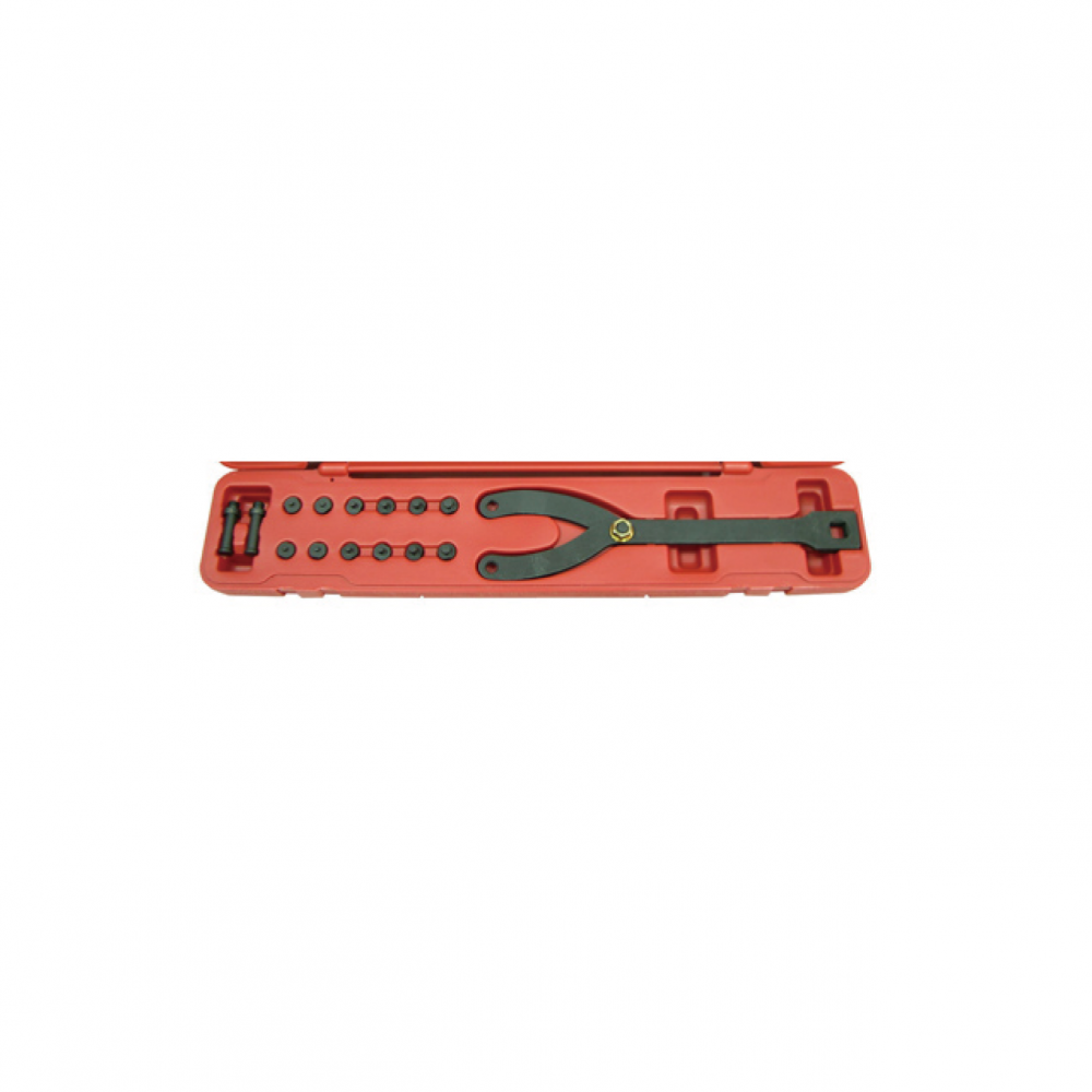 The universal design of this wrench ensures that it will fit on a wide variety of pulleys that feature holes or slots including both crankshaft and camshaft pulleys. This versatile wrench is widely adjustable from 1 1⁄4" up to 5. Use with a 1⁄2" drive ratchet or breaker bar. The tool accommodates the most common metric size pin configurations including: 3.5 mm Pin, 4 mm Pin, 4.5 mm Pin, 5 mm Pin, 6 mm Pin, 7 mm Pin, 10 mm Pin |