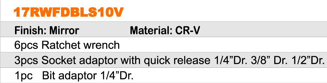 10pcs Extra Long Double Box Flexible Ratchet Wrench Set