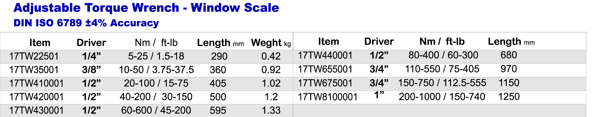 Adjustable Torque Wrench- Window Scale