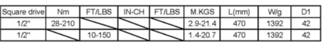 4pcs 1/2" Dr. Torque Wrench 42~210 N-m Set